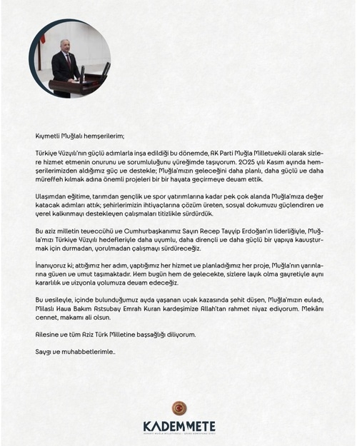 AK Parti Muğla Milletvekili Kadem Mete, 2025 yılı Kasım ayında Muğla genelinde yürütülen proje, yatırım ve ziyaretlere ilişkin kapsamlı bir değerlendirme yaptı.